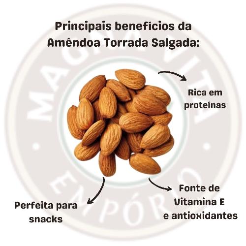 A Amêndoa Torrada sem Sal 100g é uma oleaginosa que trás muitos benefícios para diversos processos do nosso corpo, além de auxiliar em processos de emagrecimento e até ajudar a prevenir doenças.