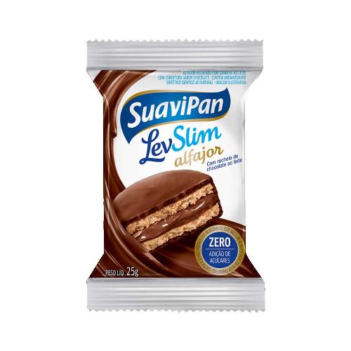 O Alfajor LevSlim da Suavipan é uma ótima opção de sobremesa ou lanchinho para a tarde. É delicioso, recheado com ganache sabor chocolate ao leite e cobertura sabor chocolate. É doce sem adição de açúcares o que é perfeito para não furar a dieta e consumir algo delicioso.