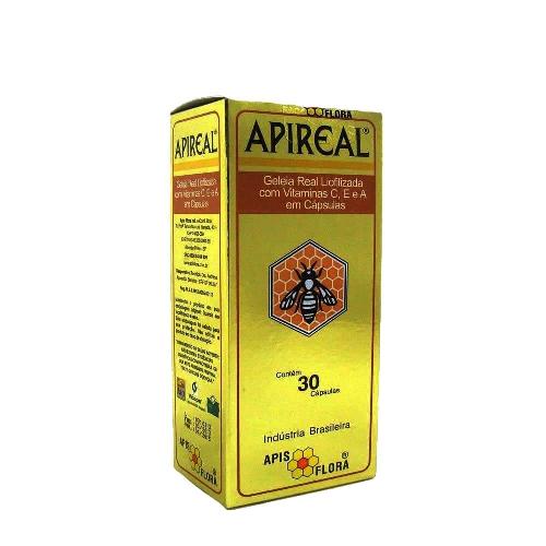 Cada cápsula de Apireal contém 100mg de geléia real liofilizada. O que associa a energia única do mel, com as vitaminas, sais minerais e aminoácidos da geléia real. Alimento concentrado, que apresenta todos os nutrientes conhecidos, principalmente vitaminas do complexo B com destaque a B5, apresentando propriedades antioxidantes que retardam os processos de envelhecimento celular. Proporciona maior jovialidade, vitalidade e disposição. A geleia real é liofilizada à baixa temperatura (-25°C), permitindo a manutenção de sua estabilidade e valor biológico, mesmo em temperatura ambiente.Rico em vitaminas essenciais como C, E e A, que protegem o organismo contra radicais livres e auxiliam no fortalecimento do sistema imunológico. SUGESTÃO DE CONSUMO: Utilizar 1 cápsula 2 a 3 vezes ao dia.