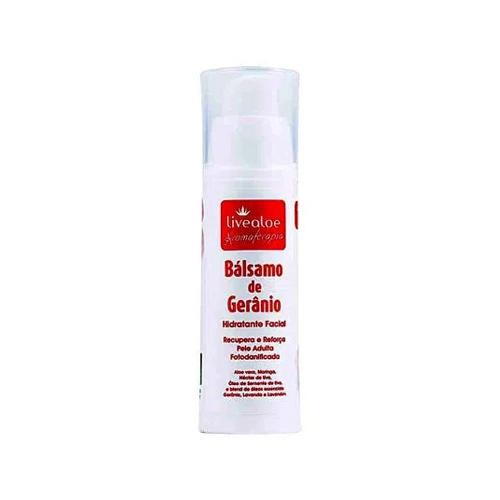 Bálsamo de Gerânio Hidratante Facial 30ml Livealoe: Este Bálsamo é um hidratante facial para a pele adulta com toque macio e aveludado. Ele possui óleos essenciais que reduzem os danos das radiações solares na pele, proporcionam uniformidade, luminosidade e recuperação. Sobre a marca: A Live Aloe foi concebida para produzir cuidadosamente e comercializar fitocosméticos. As formulações contém alta concentração de gel de Aloe Vera associado com plantas medicinais, que propiciam benefícios à pele e ao cabelo. Os produtos respeitam a natureza e são sustentáveis, propondo ao consumidor uma concepção mais ampla da beleza, como hábito de cuidar de si mesmo, ou seja, resgatando o auto-cuidado. É a comunhão entre saúde, beleza e meio ambiente!