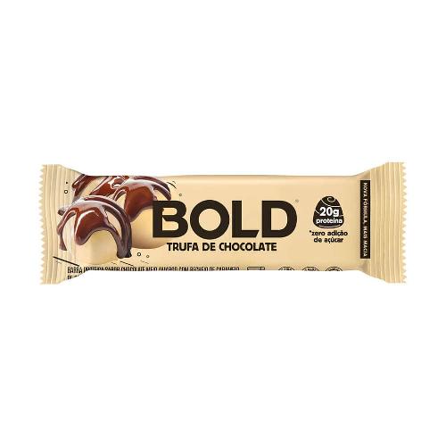 A Barra Bold Bar Trufa de Chocolate 60g possui 237 kcal = 990 kJ, 19g de carboidratos que têm função energética e estrutural e 20g de proteínas, as proteínas servem para ajudar a produzir massa muscular e manter pele e cabelos saudáveis entre outros benefícios.