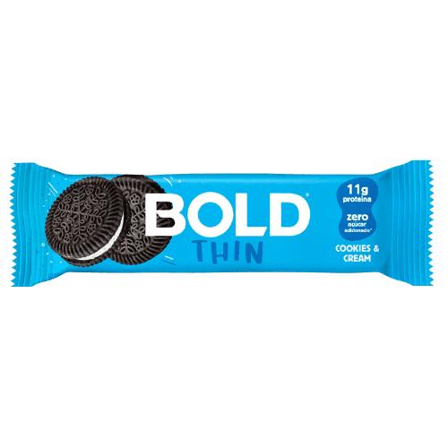 A Barra Bold Thin Cookies Cream 40g possui 172 kcal = 719 kJ, 14g de carboidratos que têm função energética e estrutural e 11g de proteínas, as proteínas servem para ajudar a produzir massa muscular e manter a pele e cabelos saudáveis entre outros benefícios.