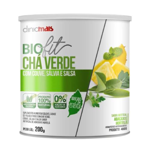 O Biofit Chá Verde 200g Clinicmais é um suplemento alimentar solúvel à base de chá verde, couve, sálvia e salsa, no delicioso e refrescante sabor de abacaxi com hortelã. Além de ser um suplemento 100% natural, não contém glúten e é 0 adição de açúcares, pois é adoçado com estévia.