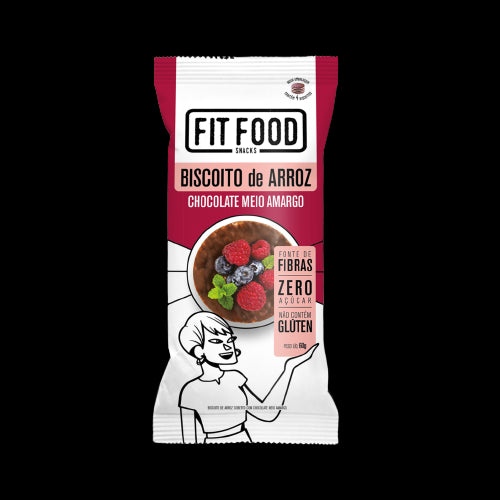 O Biscoito de Arroz com Chocolate Meio Amargo 60g Fit Food é uma opção prática para quem tem vontade de comer chocolate de vez em quando de uma forma mais saudável que traz sustância. Contém fibras que dão saciedade, e auxiliam numa alimentação equilibrada sem abrir mão do sabor.