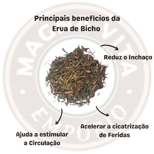 A Chá de Erva de Bicho 30g Magna Vita é uma planta medicinal, que também é conhecida como pimenta-d’água, pimenta-do-brejo, persicaria, capiçoba, cataia ou curage, ela é rica em flavonóides, taninos e ácidos orgânicos, a erva de bicho tem propriedades anti-inflamatórias, cicatrizantes e vasoconstritoras, por isso, ela é popularmente muito utilizada para tratar as hemorroidas ou cicatrização de feridas.