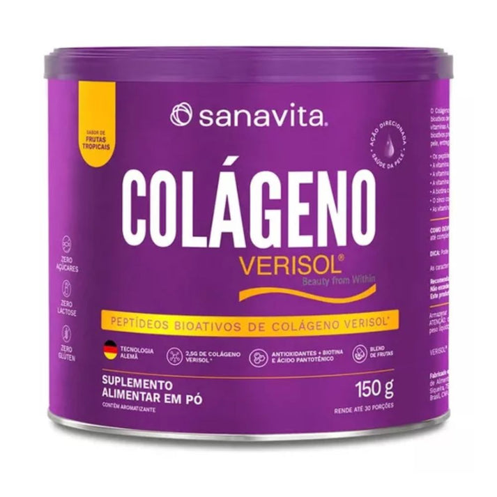 O colágeno é uma proteína já presente em nosso organismo, e é responsável por diversos resultados em nosso corpo, tanto por dentro como por fora. O Colágeno Hidrolisado Verisol Frutas Tropicais 150g Sanavita possui uma melhor absorção do corpo, ou seja, o resultado é ainda mais rápido! Esse colágeno é usado no estímulo da produção natural da substância no organismo, é um colágeno mais voltado para a estética, além de melhorar a pele, ou seja, seu foco principal também é ajudar a fortalecer cabelos e unhas.
