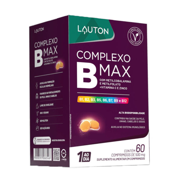 O Complexo B Max 60 Cápsulas Lauton é uma combinação das 8 principais vitaminas B existentes. As vitaminas do complexo B são solúveis em água e elas não são armazenadas no organismo em quantidades significativas. Como o nosso organismo não sintetiza nenhuma das vitaminas do complexo B, elas devem ser obtidas por meio da alimentação ou suplementação. Alguns alimentos que contém as vitaminas do complexo B são levedo de cerveja, fígado, cereais integrais, arroz, nozes, leite, ovos, carnes, peixes, hortaliças verdes, entre outros.