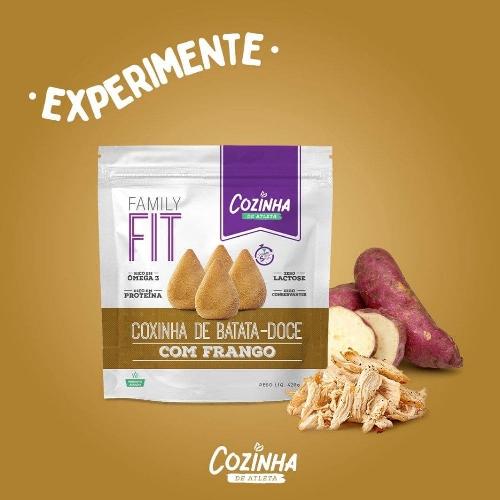 As coxinhas Family Fit possuem em sua base a batata doce, que é bastante consumida e uma fonte de carboidrato saudável. Ganhou a fama de ser o alimento predileto de quem quer ganhar massa muscular.