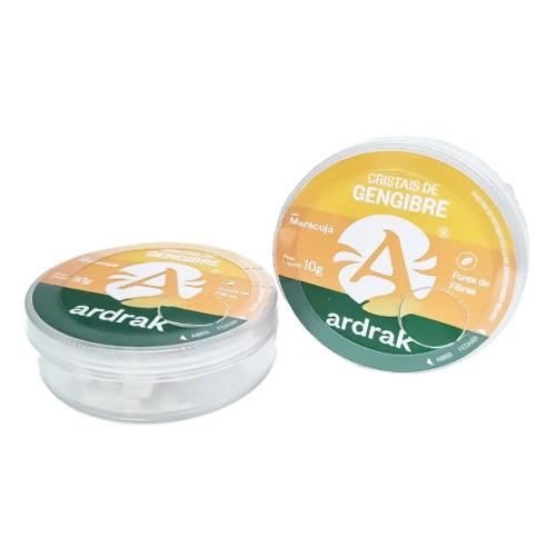 Cristais de Gengibre Maracujá Doce 15g Ardrak: Cristais de gengibre saborizados com maracujá, poderosos eficientes digestivos, antissépticos e estimulantes. Estão presentes em sua fórmula; gengibre, cravo, açúcar mascavo e canela. A Ardrak é líder nacional e destaque mundial na industrialização e comercialização de produtos à base de gengibre, tem orgulho em preservar seu lema "saúde que vem da natureza". Foi fundada em 1991 no Parque das Laranjeiras na capital Goiânia. Com uma visão de mercado ampla e tentando sempre inovar, a Ardrak lançou em 1999 mais um inedito projeto, a linha de balas funcionais.