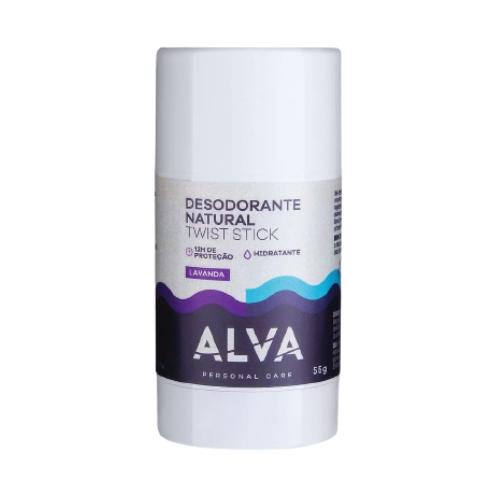 O Desodorante Natural Twist Stick Lavanda 55g Alva é um desodorante vegano, composto de óleos naturais como coco, carnaúba e manteiga de karité para hidratação, magnésio para combater as bactérias causadoras do mau odor. Livre de álcool, corantes e fragrâncias sintéticas. Com óleo essencial natural de lavanda, o desodorante natural em formato stick é suave e indicado para todos os tipos de pele.
