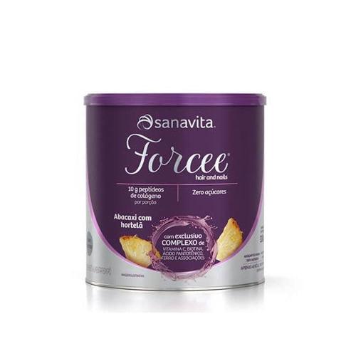 Forcee Hair and Nails Abacaxi com Hortelã 330g Sanavita: Possui uma fórmula concentrada e potente, que associa 10g de peptídeos ativos de colágeno de alta absorção a micronutrientes específicos que permitem uma entrega diferenciada para cabelo e unhas. A Sanavita é uma indústria de alimentos brasileira, especializada no desenvolvimento de produtos saudáveis e funcionais, todos comprovados cientificamente. Tudo começou quando a Dra. Jocelem Salgado, professora titular de uma universidade, desenvolveu produtos a base de proteínas, destinados a ajudar pessoas no gerenciamento de peso. A marca já está presente em mais de 2.000 pontos de vendas e possui um leque de produtos desenvolvidos com máxima qualidade!