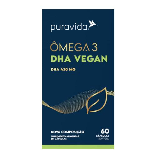 Ômega 3 Vegano DHA 100% vegetal da Puravida, é composto apenas por algas e também é envasado em cápsulas veganas. A Puravida formulou este suplemento com o DHA obtido da microalga Schizochytrium, esta alga é considerada uma das fontes mais puras desse nutriente.
