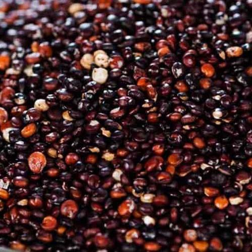 A quinoa, ou quinua, negra é rica em cálcio, ferro e ômega 3 e 6. Possui uma boa quantidade de fibras, que ajudam a regular o intestino e melhoram os níveis de colesterol. É também uma ótima fonte de vitaminas do complexo B. É uma alternativa ao arroz, mais proteica e com mais fibras.
