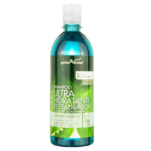 O shampoo ultra hidratante Gostas Verdes possui ativos que recuperam a hidratação do cabelo ressecado por agentes químicos e calor. Possui em sua composição Babosa (Aloe Vera) e Algas Marinhas, ou seja, ajuda muito nos cabelos secos, fracos e ressecados, proporcionando brilho e hidratação, sempre controlando o volume. Sugestão de consumo: Aplique nos cabelos molhados e massageie suavemente com as pontas dos dedos até formar espuma. Deixe agir por 2 à 3 minutos. Enxague e repita a operação.