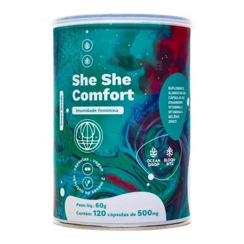 O She She Comfort Cranberry 120 Cápsulas Ocean Drop é um suplemento alimentar vegano, no sabor de cranberry, composto de vitamina C, vitamina A, selênio e zinco, que melhora a qualidade de vida, suportando o funcionamento do sistema imune e auxiliar na manutenção de mucosas.