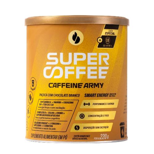 O Supercoffee Paçoca com Chocolate Branco 220g Caffeine Army é o mais nova edição da Supercoffee no delicioso sabor de Paçoca com Chocolate Branco, a edição especial em parceria com a Haoma, vai te surpreender!. O Supercoffee é uma bebida energética à base de café, com mais de 11 ingredientes naturais, possui em sua composição o TCM. O melhor combustível para o organismo, ele converte rapidamente em energia que liga o seu corpo e mente, capaz de mantê-los nesse estado por horas, sem picos e sem falhas, proporcionando mais energia e disposição, otimizando sua queima de gordura e tornando seu dia mais produtivo - com mais foco e concentração. São 22 doses da combinação perfeita, que alinha o funcional com ingredientes saborosos naturais, que proporcionam a dose certa de energia limpa, estável e duradoura.