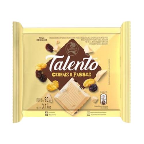 O que é a barra de chocolate Talento Cereais e Passas Chocolate Branco Garoto?