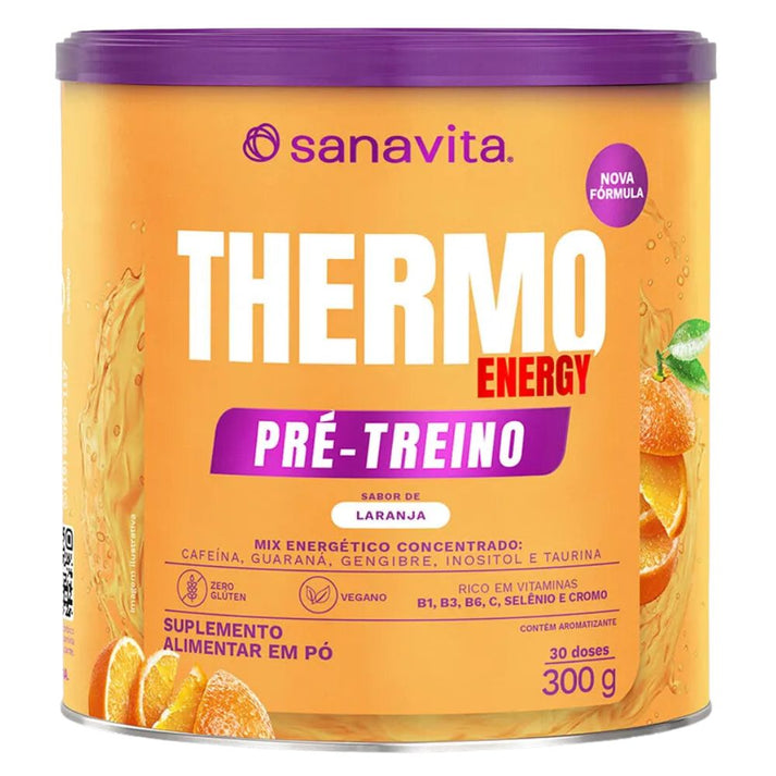 Thermo Energy Laranja 300g Sanavita: É um mix energético concentrado com cafeína, guaraná e gengibre com taurina e inositol, rico em vitaminas B1, B3, B4, C, Selênio e cromo. Sobre a marca: A Sanavita é uma indústria de alimentos brasileira, especializada no desenvolvimento de produtos saudáveis e funcionais, todos comprovados cientificamente. Tudo começou quando a Dra. Jocelem Salgado, professora titular de uma universidade, desenvolveu produtos a base de proteínas, destinados a ajudar pessoas no gerenciamento de peso. A marca já está presente em mais de 2.000 pontos de vendas e possui um leque de produtos desenvolvidos com máxima qualidade!