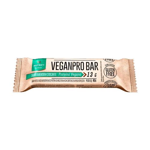 Veganpro Bar Amendoim 40g Nutrify: A VeganPro Bar Nutrify é uma barra de proteína vegana. Ela fornece 13 g de proteína provenientes da proteína isolada do arroz integral orgânico e da proteína de ervilha orgânica. Esses ingredientes unidos em uma barra de proteína contribuem para a saciedade e promovem o aumento da ingestão de nutrientes indispensáveis na alimentação de forma prática. Este snack é ideal para todos os momentos do dia. Sobre a marca: A Nutrify se preocupa com as múltiplas dimensões do ser humano (física, mental e social) como caminho para a obtenção do verdadeiro bem-estar. Eles têm como missão difundir o conceito integrado de qualidade de vida que parte do dia a dia dos seus clientes e isso reflete nos produtos que a marca comercializa. Se comprometem a fornecer alimentos funcionais de qualidade com responsabilidade social e sustentabilidade.