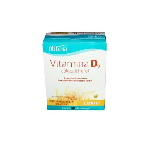 A Vitamina D3 (colecalciferol) 1000UI tem o papel de regular a homeostase do cálcio no corpo, é essencial para a manutenção dos ossos e na prevenção de fraturas e fragilidade óssea. Sobre a marca: A Althaia é uma sub marca da Equaliv. A A Equaliv é parceira da farmacêutica Althaia, fundada no ano de 2020. Tem como propósito tratar o meio ambiente e as pessoas com respeito e dedicação, aumentando assim a representividade no mercado farmacêutico. Combinando alta tecnologia, nutrientes funcionais ativos e diferentes formas farmacêuticas (cápsulas, pós para mistura, gotas, opções mastigáveis e outras), a marca procura descomplicar a vida das pessoas que buscam saúde e bem-estar.