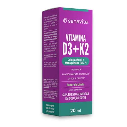 A Vitamina D3 + K2 20ML Sanavita é um suplemento alimentar que oferece a sinergia perfeita entre a vitamina D3 na forma de colecalciferol (2.000 UI), com a forma bioativa e biodisponível da vitamina K, a menaquinona (MK-7). Em formato líquido, super prático e com sabor agradável e natural de limão, essa dupla é perfeita para a formação e manutenção dos ossos, uma vez que uma das funções da vitamina D no corpo é auxiliar na absorção do cálcio, e a vitamina K2 tem como função direcionar o cálcio para tecidos duros, como os ossos e dentes. Além disso, essas duas vitaminas desempenham outras importantes funções, como é o caso da vitamina D, que é essencial para o funcionamento do sistema imune e a vitamina K, que auxilia na coagulação do sangue.